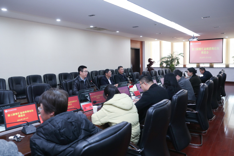 3月19日,学校在图文信息中心第一会议室举行第三届智汇盐城黄海论坛推进会。盐城市社科联党组书记、主席李晓奇应邀到会指导,校党委书记邵从清出席推进会。会议由副校长王曙东主持。